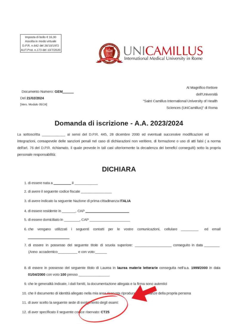 Prima di concludere la procedura, controlla nel modulo d’iscrizione che sia presente